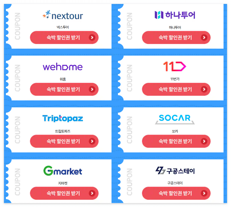 야놀자·여기어때·인터파크 등 여행사에서 매일 오전 10시부터 선착순 발급!