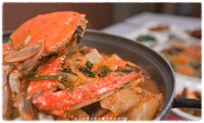 이 집의 또 다른 진짜 정체성은 바로 충남 태안의 대표 향토 음식인 ‘게국지’에서 빛을 발합니다. 꽃게와 묵은지를 된장·고추장 육수에 푹 끓여낸 국물 요리인데요.