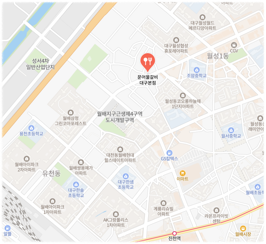 이 문어물갈비는 대구 달서구 조암로에 위치한 ‘문어물갈비 대구본점’에서 맛볼 수 있어요.