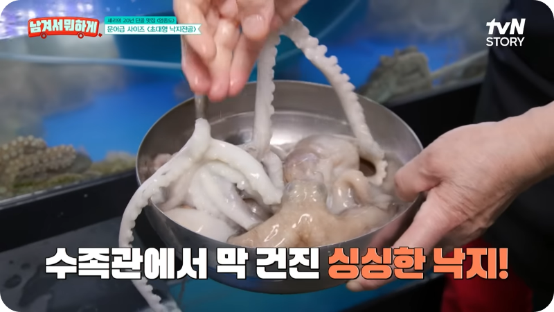 수조에서 건져 올린 산낙지, 진짜 신선함이란 이런 것!