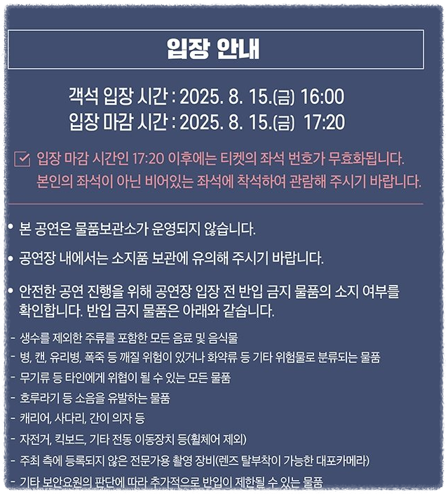 - 예매 시작일: 2025년 8월 8일(금) 정오 12시