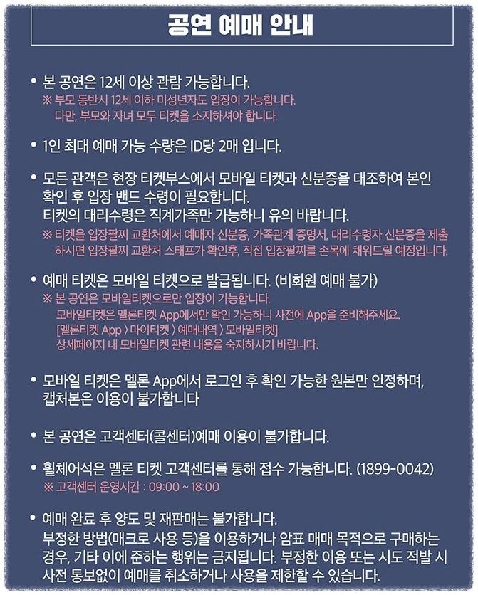 - 예매처: 멜론티켓 앱 (모바일 전용)