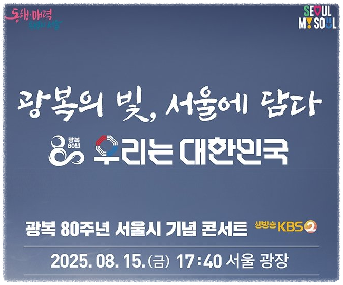 2025년은 광복 80주년이라는 뜻깊은 해입니다. 이를 기념해 서울시는 광복절 당일 8월 15일 오후 5시 40분부터 서울광장에서 대규모 무료 콘서트를 개최합니다.
