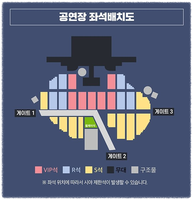예매 시 좌석이 자동 배정되며, VIP/R/S4 구역 중 배정됩니다. 좌석은 입장 시간 이후 무효화될 수 있으니 시간 엄수는 필수!