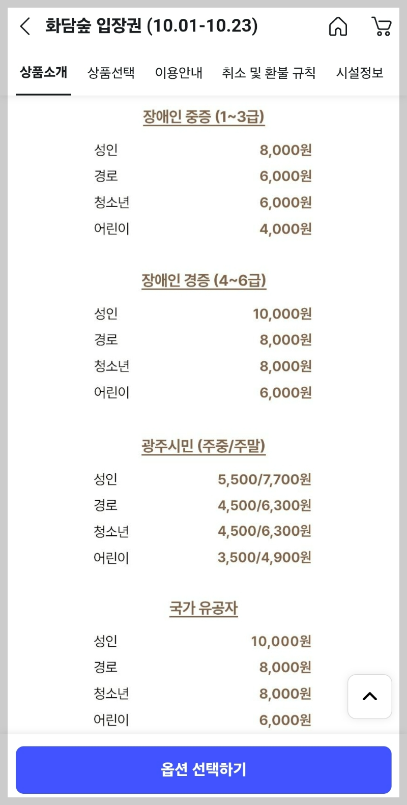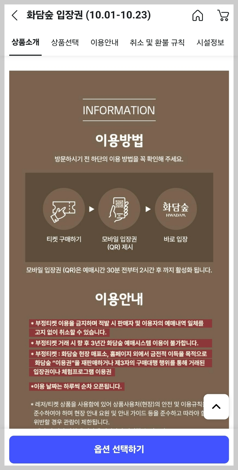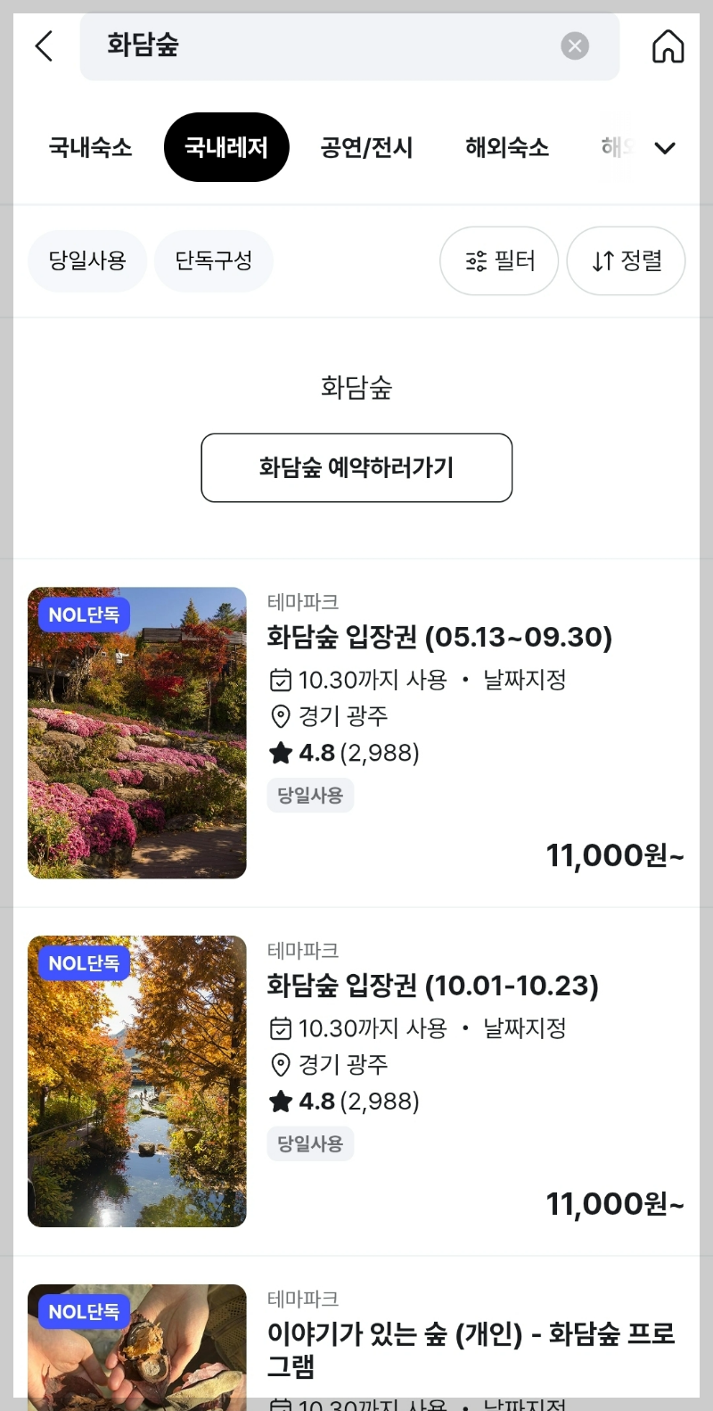 💡 예약 가능 항목: 입장권 / 모노레일 / 화담채 식당