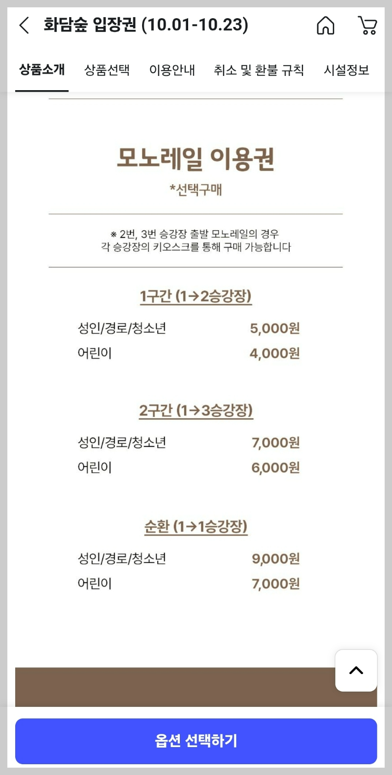 - 1구간: 성인 5,000원 / 어린이 4,000원