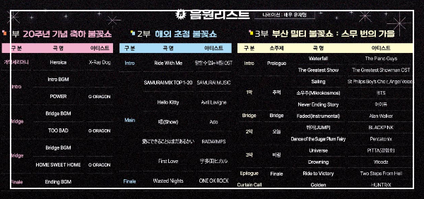 • 광안리, 이기대, 동백섬 세 곳에서 동시 불꽃 연출 예정