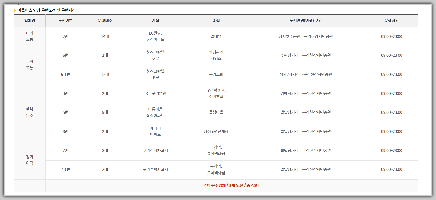 • 운행 노선: 2번, 3번, 5번, 6번, 6-1번, 7번, 8번